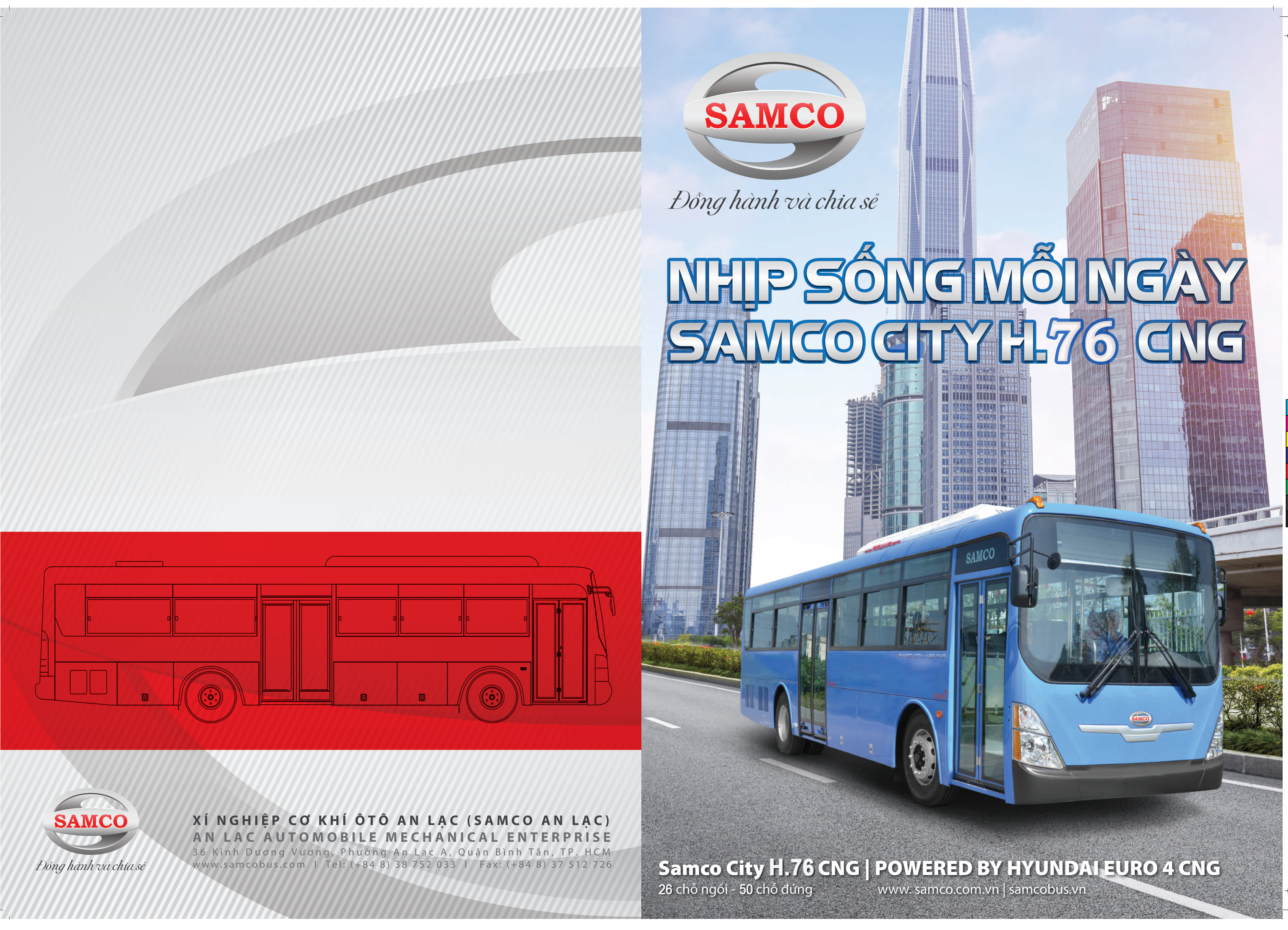 Xe buýt xanh Samco City H.76 CNG - là dòng xe buýt loại lớn với sức chứa 76 người, sử dụng động cơ Hyundai - Hàn Quốc, hoạt động bằng khí gas CNG thân thiện với môi trường, phù hợp với các tuyến vận tải hành khách có lưu lượng lớn.