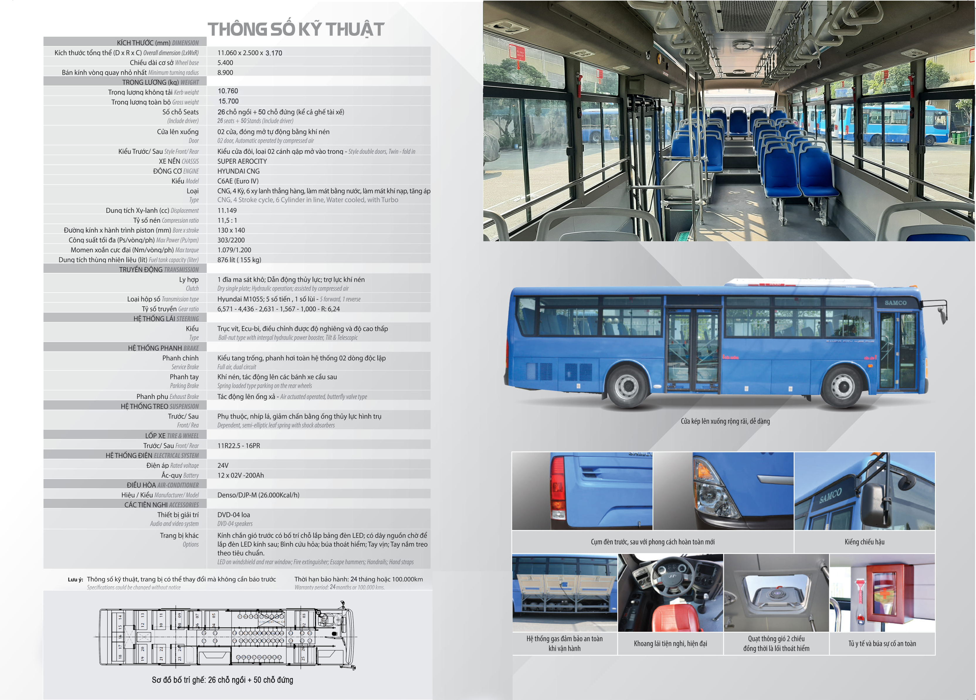 | Số chỗ Seats (include driver) | 26 chỗ ngồi + 50 chỗ đứng (kể cả ghế tài xế) - 26 seats + 50 Stands (Include driver) |
