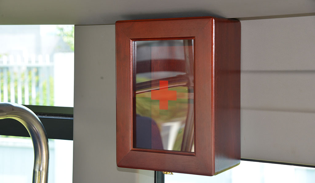 Kính chắn gió trước có bố trí chỗ lắp bảng đèn LED; có dây nguồn chờ để lắp đèn LED kính sau; Bình cứu hỏa; búa thoát hiểm; Tay vịn; Tay nắm treo theo tiêu chuẩn. LED on windshield and rear window; Fire extinguisher; Escape hammers; Handrails; Hand straps |