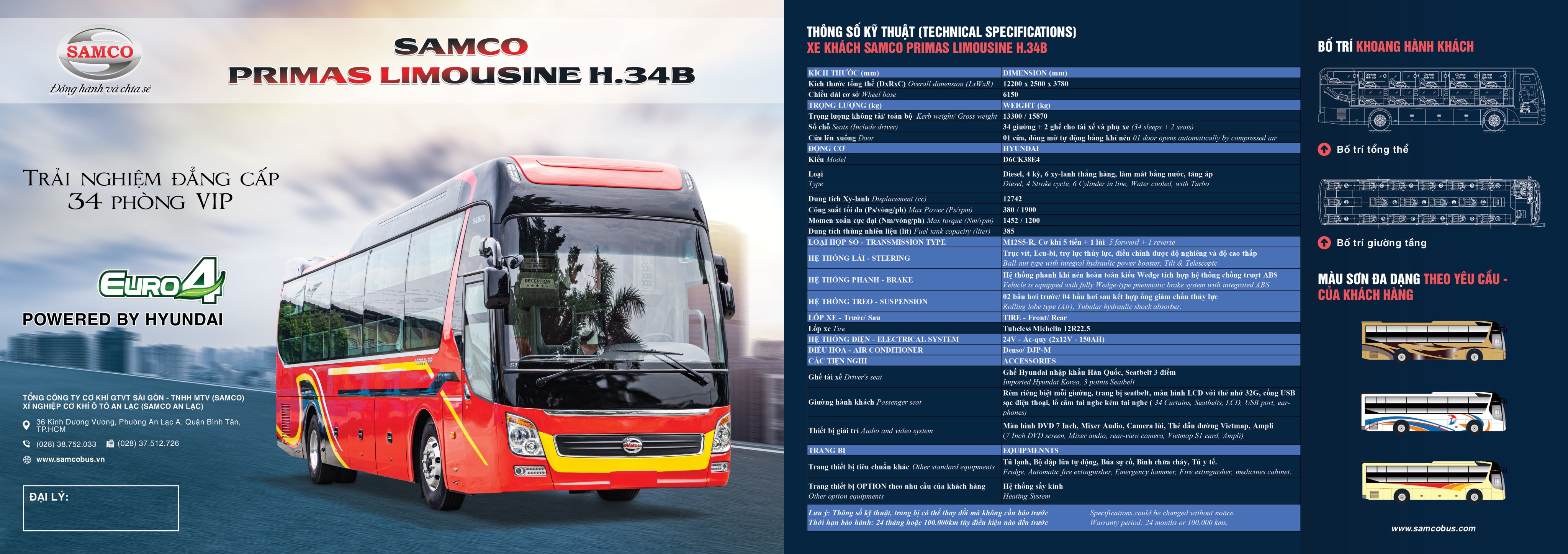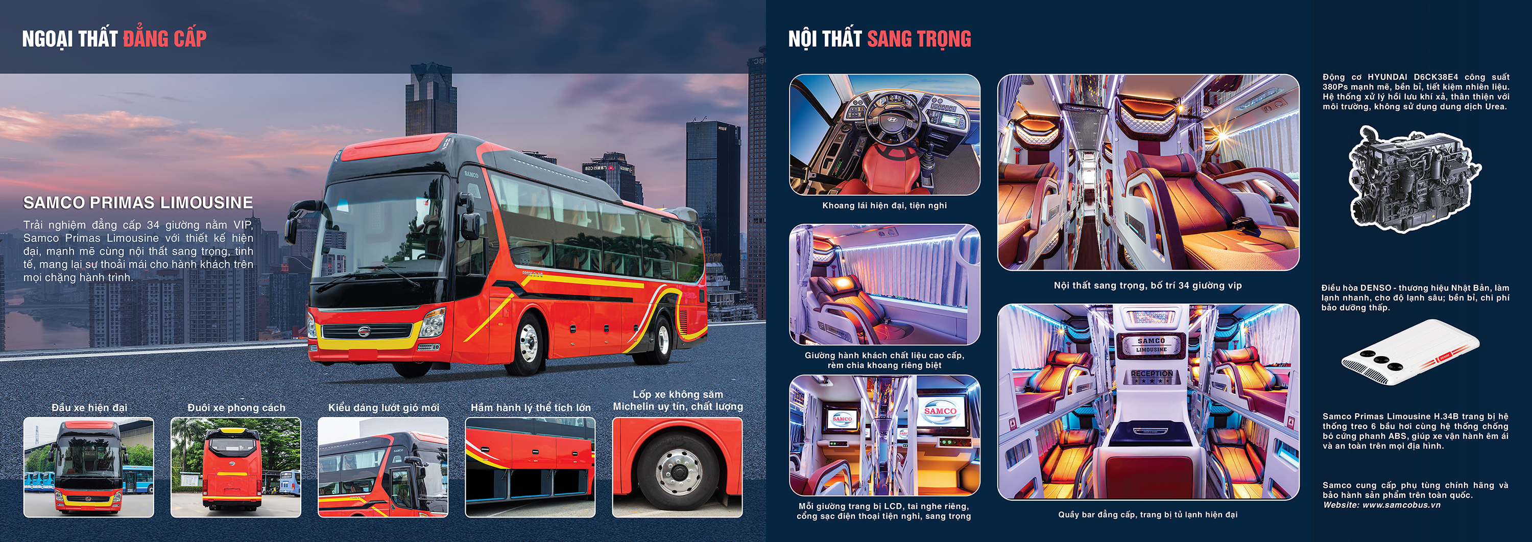 Trải nghiệm đẳng cấp 34 giường VIP cùng SAMCO PRIMAS LIMOUSINE H.34B - động cơ Hyundai mạnh mẽ. Sự lựa chọn hàng đầu cho các doanh nghiệp kinh doanh vận tải hành khách tuyến dài trên 300km.