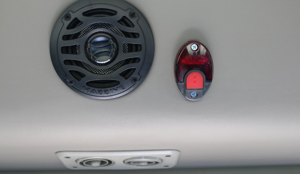 Chuông báo dừng, Bình cứu hỏa, Kính chắn gió trước có bố trí chỗ lắp bảng đèn led; có dây nguồn chờ để lắp đèn led kính sau; Tay vịn, tay nắm treo theo tiêu chuẩn. Stop bells, fire extinguisher, box for Led plate, handdralls. |